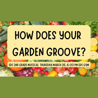 The 2nd grade classroom musical, How Does Your Garden Groove, is on Thursday March 26 at 6:00 pm in the EDS gym.